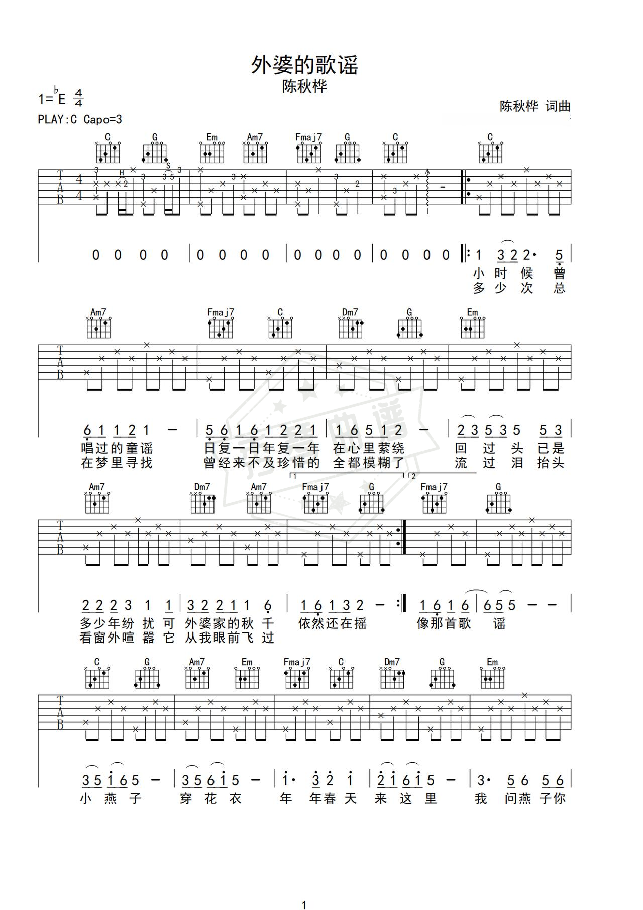 《外婆的歌谣》吉他简谱C调弹唱谱(陈秋桦)cocoxs10个月前发布关注私信02 © 版权声明文章版权归作者所有,未经允许请勿转载。THE END会员专享# 吉他 喜欢就支持一下吧 分享QQ空间微博QQ好友海报分享复制链接收藏